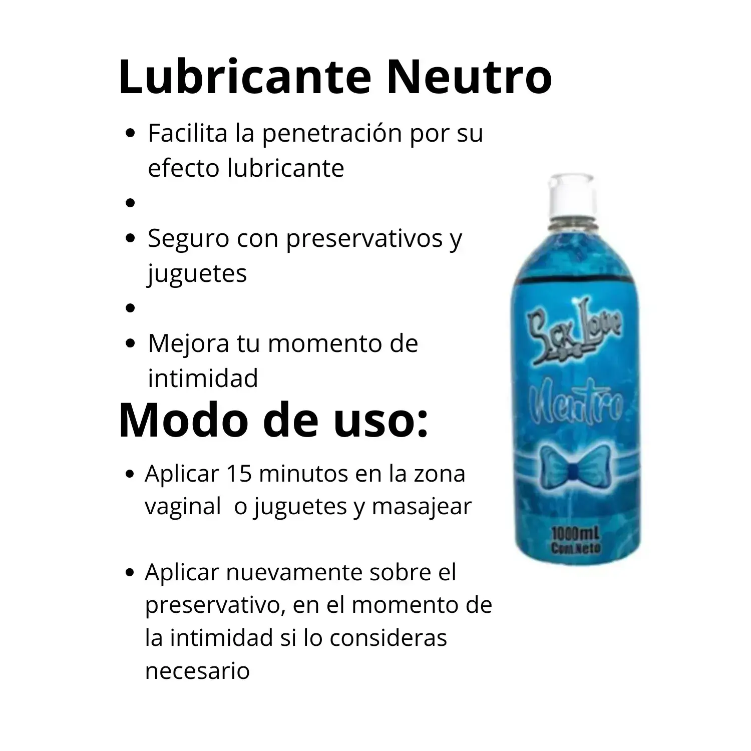 Lubricante neutro de base acuosa. Con una textura sedosa de alta viscosidad y libre de parabenos, este gel tipo gel es la clave para experiencias íntimas más suaves y placenteras. ¿Te gustaría disfrutar de encuentros sexuales más prolongados y sin molestias? Nuestro lubricante es la solución. Elimina cualquier dolor o incomodidad, ofreciendo una textura sedosa y suave que transformará tus momentos de intimidad. Para su uso Simplemente aplica y masajea suavemente 10 minutos antes del encuentro.